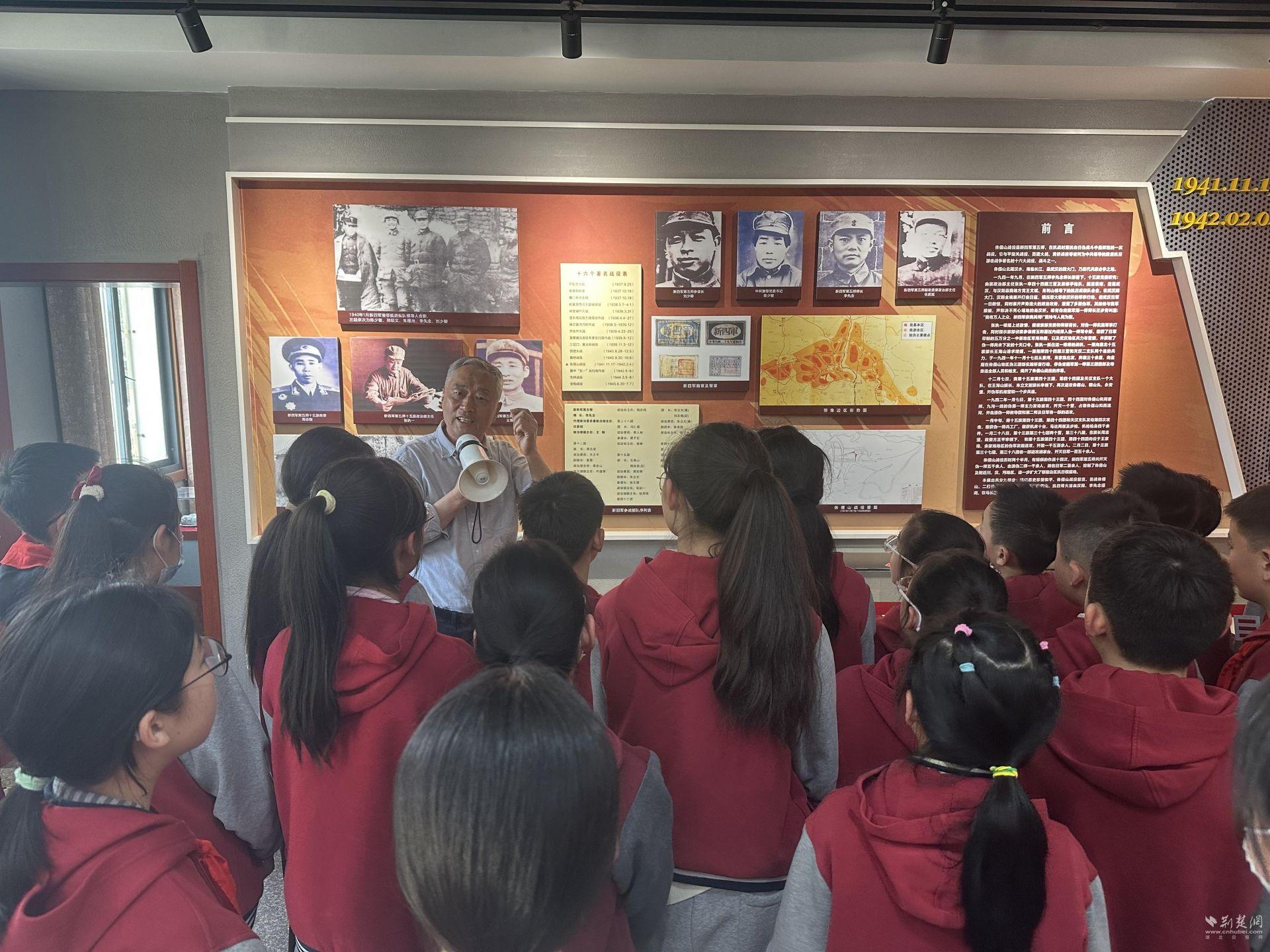 武汉市长春街小学蔡甸分校关工委带领3至5年级32名学生代表,赴侏儒山战役博物馆开展“缅怀英烈魂 传承红色志”主题研学祭扫活动。师生跟随讲解员参观展厅,通过历史图片、实物展品,深入了解“三打侏儒山”的战斗细节。校关工委相关负责人结合馆内展品,把朱立文烈士的生平事迹讲得鲜活生动——从投身革命的坚定抉择,到战斗中的无畏冲锋,再到为掩护战友壮烈牺牲的最后时刻,历史细节敲击着同学们的心房。